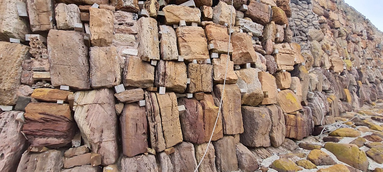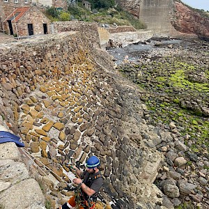 Equinox were contracted in the summer of 2021 to install 1500 timber wedges into the harbour stone wall. The purpose of this work was to strengthen and stabilise the stone wall construction.